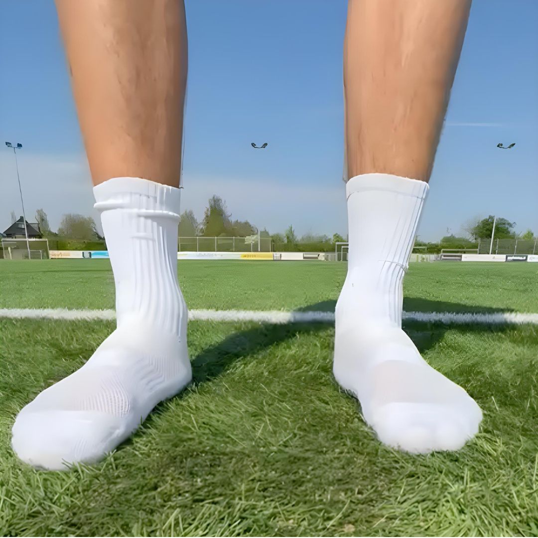 Geen geglij meer in je voetbalschoen met gladde sokken. Met deze gipsokken speel je altijd lekker.